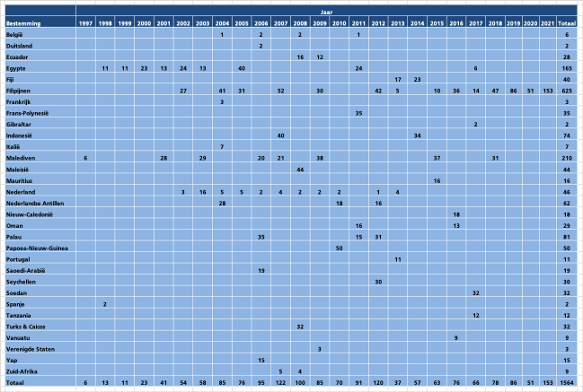 Hieronder een overzicht van de locaties waar ik sinds 1997 heb gedoken.